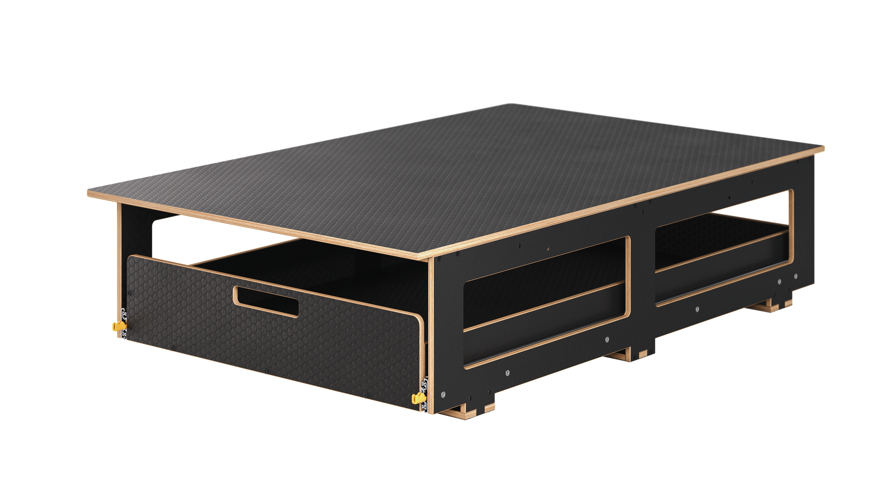Made from 15mm phenolic plywood and fitted with 220kg-rated runners, it’s built to last and easy to clean.